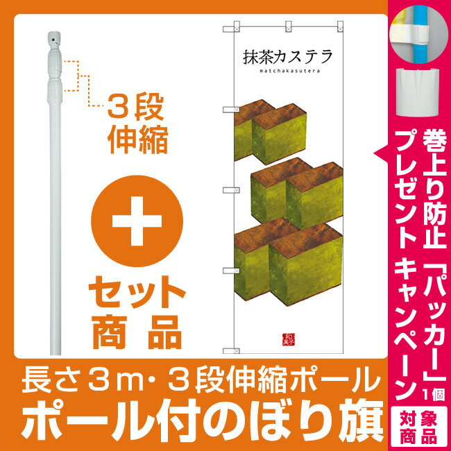【プレゼント付】【セット商品】3m・3段伸縮のぼりポール(竿)付 のぼり旗 抹茶カステラ (SNB-2989)